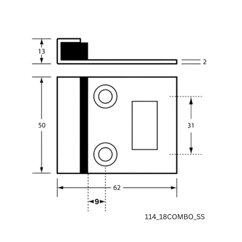 Dimensions: 50mm x 62mm x 13mm