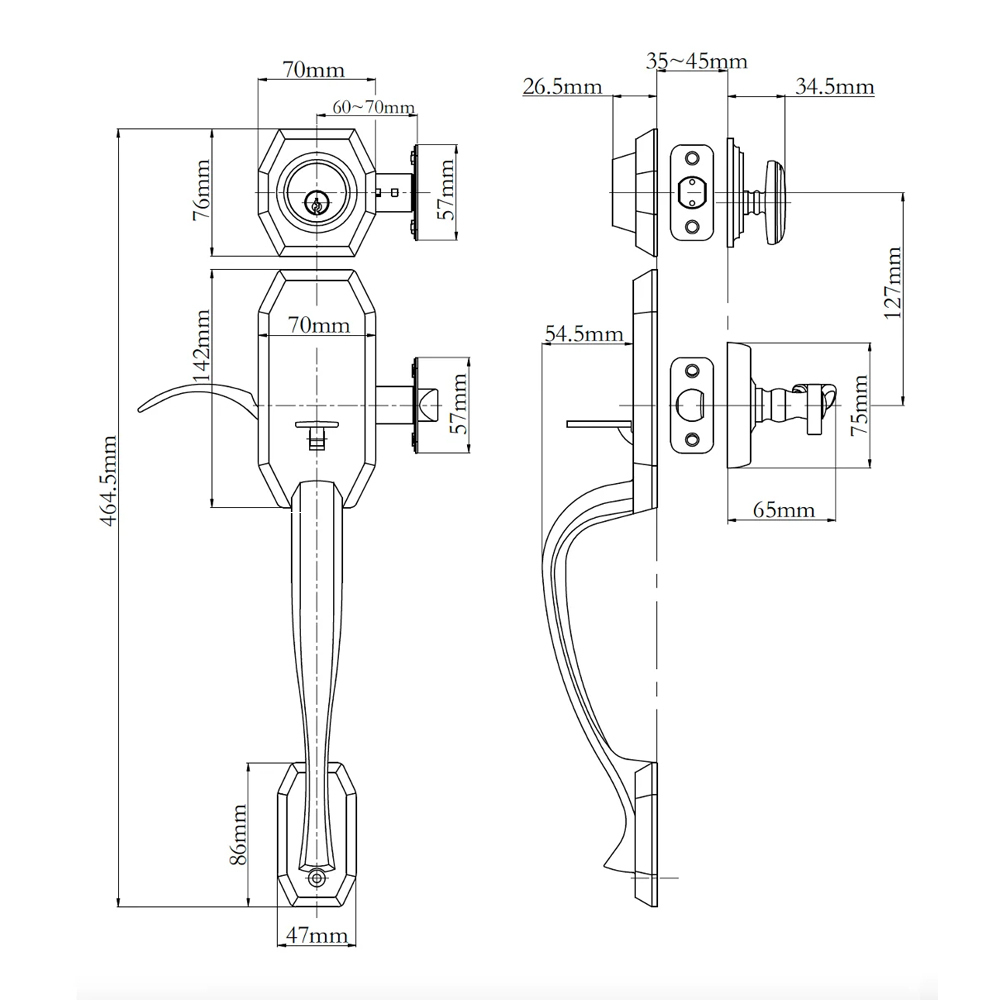 Suitable for door thickness 35-45mm (Extension kit available upon request)